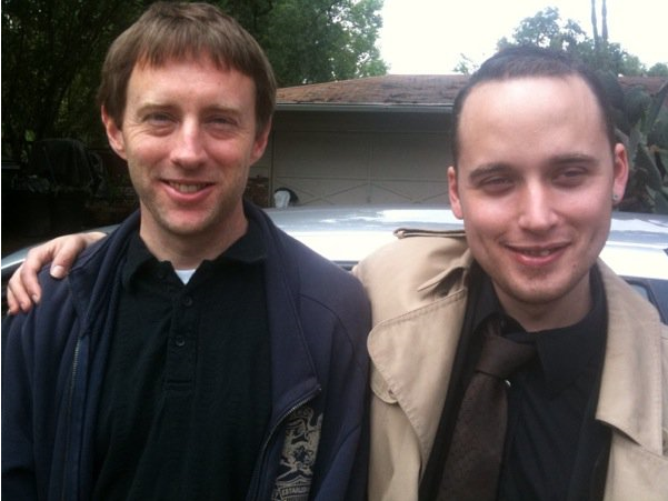 Finally, here’s yet another photograph — taken after this well-noted one with Kevin Mitnick (and posted to Lamo’s Facebook page on June 9, 2010, one day before Wired published the chat logs) — of Poulsen together with his “source,” the government informant Adrian Lamo: