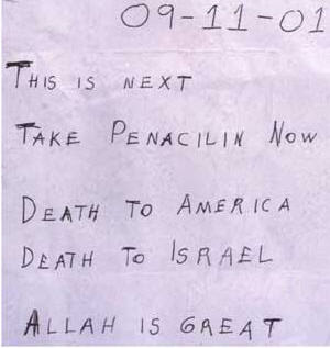 - Although the FBI now admits that the 2001 anthrax attacks were carried out by one or more U.S. government scientists, a senior FBI official says that the FBI was actually told to blame the Anthrax attacks on Al Qaeda by White House officials (remember what the anthrax letters looked like). Government officials also confirm that the white House tried to link the anthrax to Iraq as a justification for regime change in that country
