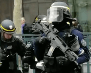 Images surfaced on social media this week confirming that riot police stationed near the Arc de Triomphe in Paris last Saturday afternoon were brandishing semi-automatic Heckler & Koch G36 weapons with live ammunition cartridges.
