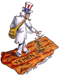 The war on Yemen is also portrayed as a civil war. While the bombing is by Saudi Arabia, the insidious role of the US is downplayed or casually ignored. “The US is not directly involved so there is no need for us to wage an anti-war campaign”. (paraphrase)