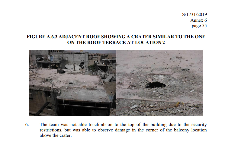 The [the OPCW Fact-Finding Mission in Syria] team noted that a similar crater was present on a nearby building.