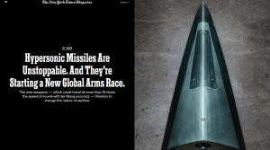 “Fast, effective, precise and unstoppable — these are rare but highly desired characteristics on the modern battlefield.” That’s how the New York Times Magazine (6/19/19) described the hypersonic missiles being pursued by the United States, Russia, China and other countries in a nearly 5,000-word collaborative article that seriously misleads readers on who started and is currently driving the next phase of the global arms race.