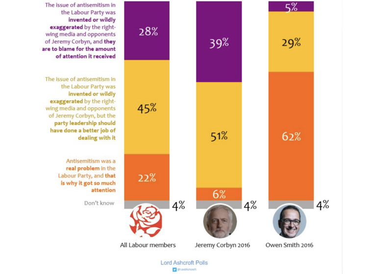 A new opinion poll found that 73 percent of Labour members think anti-Semitism in the party is exaggerated.