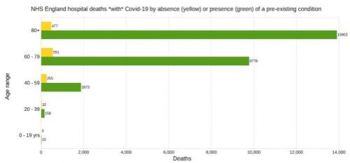 Simply put: Of the 27045 deaths with Covid19 in English hospitals (up to June 3rd), only 1318 had no pre-existing conditions. That’s less than 5%.