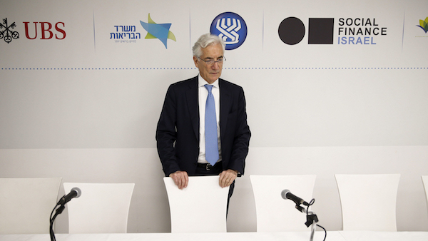 Feature photo | Ronald Cohen, chair of a global steering group on social impact investing, attends a news conference in Tel Aviv on March 14, 2016. Baz Ratner | Alamy
