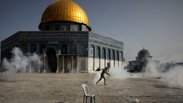 Feature photo | A Palestinian man runs as Israeli forces fire tear gas at the Al Aqsa Mosque compound in Jerusalem’s Old City, May 10, 2021. Mahmoud Illean | AP
