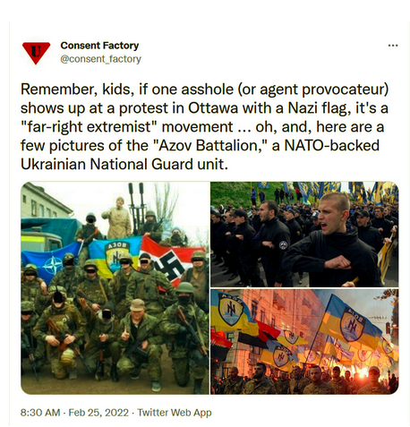 If some Putin-Nazi traitor mentions these facts (or sends you links to the numerous articles documenting the 2014 coup), again, switch your mind off immediately and shout “ANCIENT HISTORY! ANCIENT HISTORY!” and then shoot yourself up with a massive “booster” of fact-checked Truth from the Forces-of-Goodness media. I recommend The Guardian and The New York Times, but if you want to go directly to the source, just follow Illia Ponomarenko of the Kyiv Independent on Twitter. I’m sure that Illia and his neo-Nazi Azov-Battalion “brothers in arms” will cleanse you of all that “disinformation” and “Putin-Nazi propaganda.”