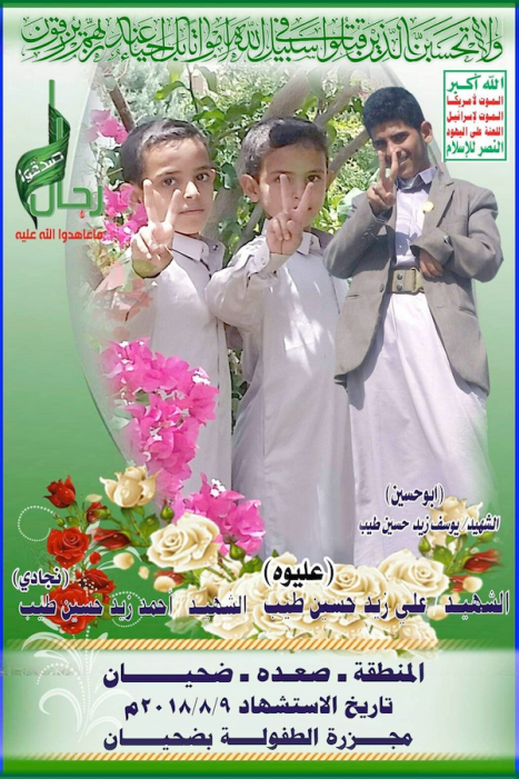 Three children of Tayyeb were killed: Yousef 6th grade, 15, Ahmed 4th grade, 11, and Ali 3th grade, 9.