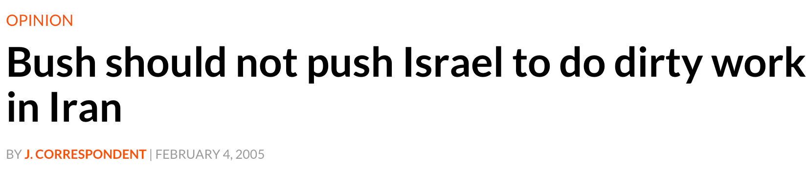 President Dick Cheney dropped a bombshell, hinting, that Israel would, so to speak: be doing the dirty work for us (paraphrase) without US military involvement and without us putting pressure on them “to do it”.