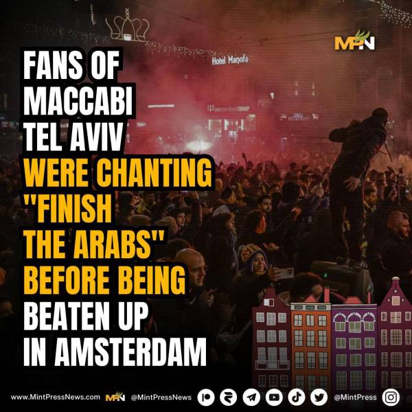 Israel’s Maccabi Tel Aviv supporters, notorious for their racist chants, decided to make those chants as they watched their team get beat 5-0. Chanting for the Israeli army to finish off the Arabs and singing a song which says “there’s no school in Gaza because the children are dead.”