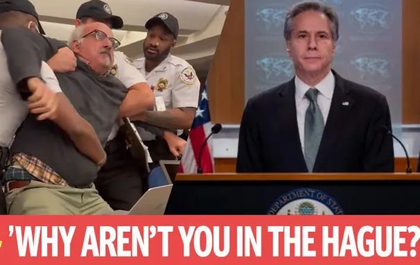 “While Blinken stood at the podium pontificating about Western press freedom, his staff physically removed journalists who dared question America’s role in mass killing.”