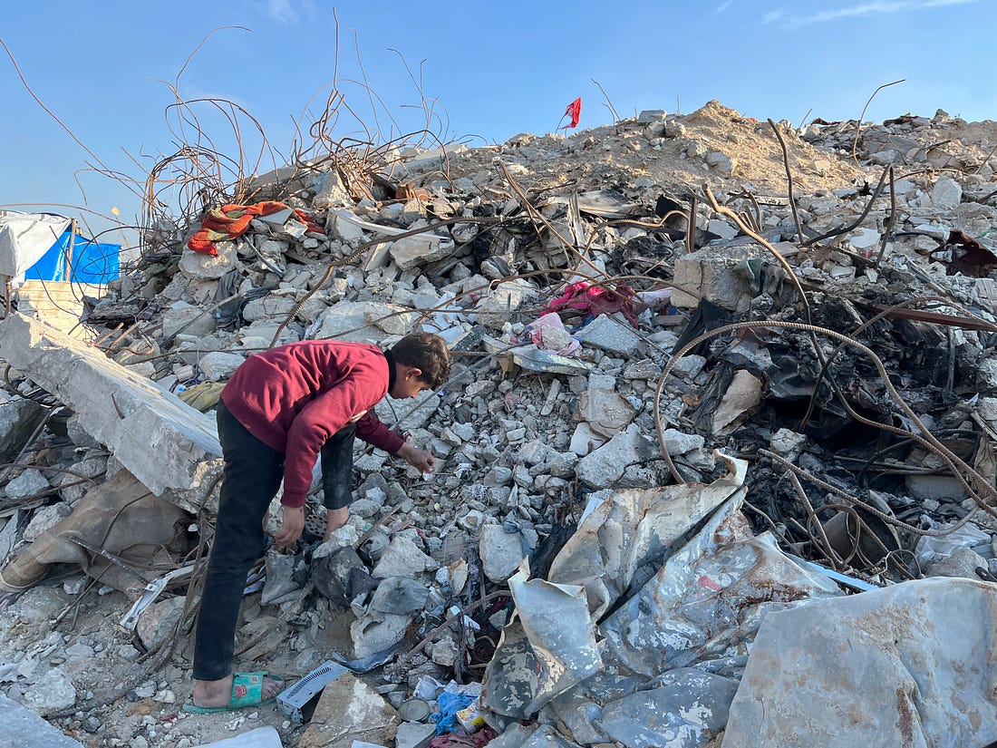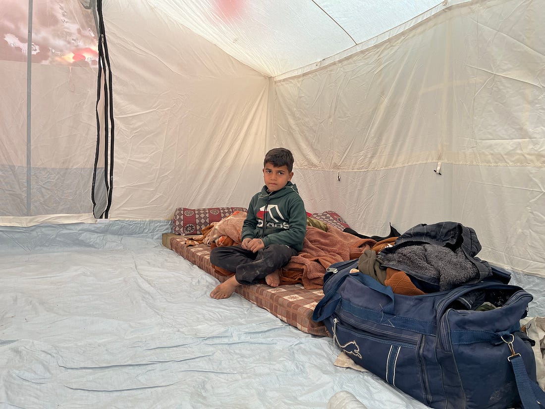 “All I see is destruction and rubble, nothing else. This is really hard for me. My legs hurt from the cold at night and walking long distances to get water and food. We don’t have any life here, we are just stranded in a tent over what used to be our home,” Raed said.