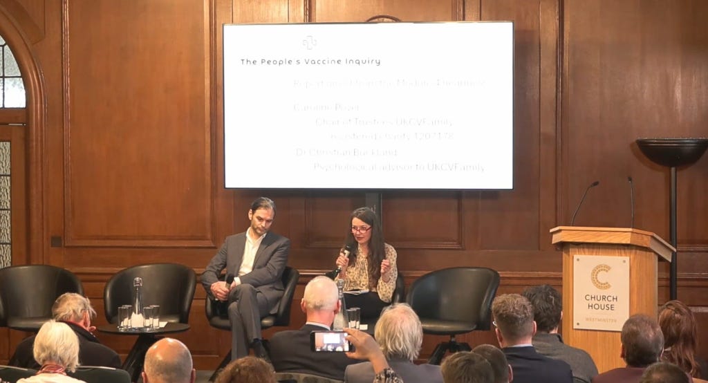 PVI were joined by Dr Christian Buckland (Psychological Advisor to UKCVFamily) and Caroline Pover (UKCVFamily Chair of Trustees), who opened the press conference with an fascinating and insightful conversation. Caroline attended all the hearings and shared her observations of the process and the perspective of the vaccine injured and bereaved. Dr Buckland talked about the appalling psychological trauma experienced by the Covid vaccine victims and their families over the last 4 years. Full video here and Caroline’s written reflections here.