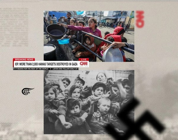 “Repeat a lie often enough and it becomes the truth,” Goebbels said. (Al Mayadeen English; illustrated by Batoul Chamas)