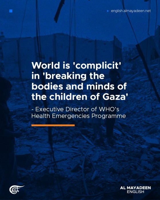 “We are breaking the bodies and minds of the children of Gaza. We are starving the children of Gaza. We are complicit,” said Dr. Michael Ryan, Executive Director of WHO’s Health Emergencies Programme, speaking to reporters at the WHO headquarters.