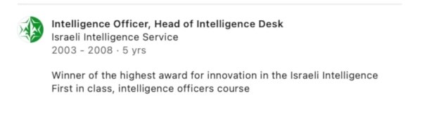 Founded in “Israel” in 2010 and technically a private company, its upper ranks are filled with former Israeli government intelligence officers. Chief amongst them is co-founder Elad Schaffer, whose LinkedIn page noted that he was head of an intelligence desk for an unnamed Israeli government agency. But the logo that is displayed next to the admission is that of Unit 8200 of the IDF Military Intelligence Division, which is the signals intelligence agency of the Zionist regime.