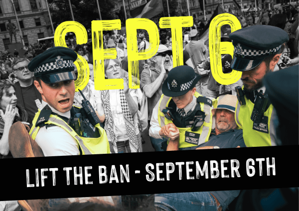 • Following the arrests of over 700 people for holding signs to call on the UK government to Lift The Ban on Palestine Action and to end their complicity in Israel’s genocide, Defend Our Juries have announced a mass action in London on September 6th 2025.