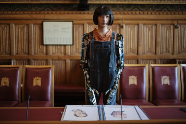 Ai-Da Robot, the world’s first ultra-realistic humanoid robot artist, appears at a photo call in a committee room in the House of Lords on October, 2022. (Credit: Rob Pinney via Getty Images.)