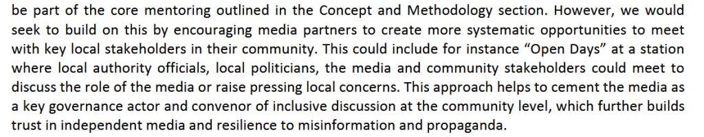 BBCMA also sought to recruit and cultivate a legion of “opinion formers” across diverse fields, particularly in London’s “priority areas of defence, security and diplomacy… who will be advocates for the UK” in the West Balkans. Associated activity included training “young people to become content producers” and “news generators,” via a “citizen content factory.” Media training programs would enable BBCMA assets “to become more effective public speakers,” and the organization would “then work with media partners in-country to provide opportunities for them.”