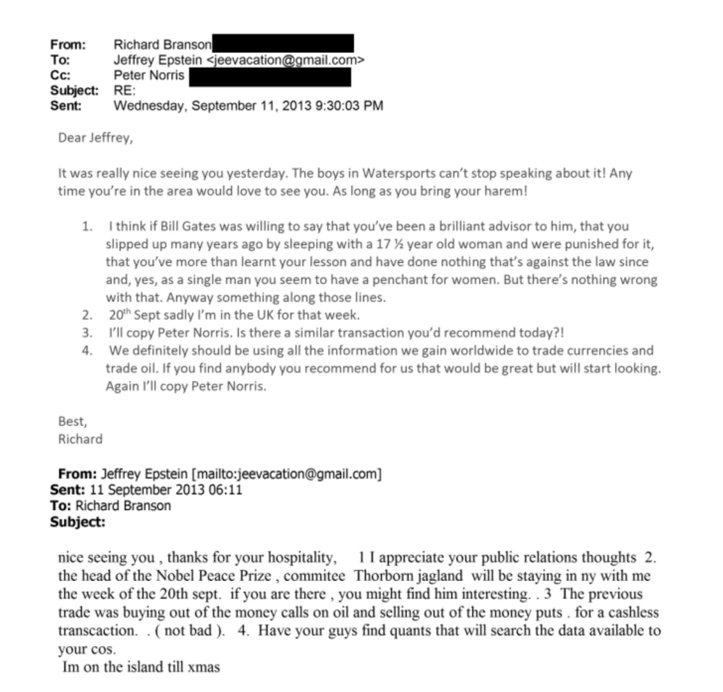 The denial from Branson is even more classic: the correspondence took place a long time ago, their meetings were only in public, and that too at charity tennis events. Philanthropy is the perfume sprayed over rot. Their denials are as formulaic as their investments. They all knew Epstein. They all wrote racy emails to him about children and girls and rape. Yet, they are all innocent. And they all distance themselves from him. So convenient.