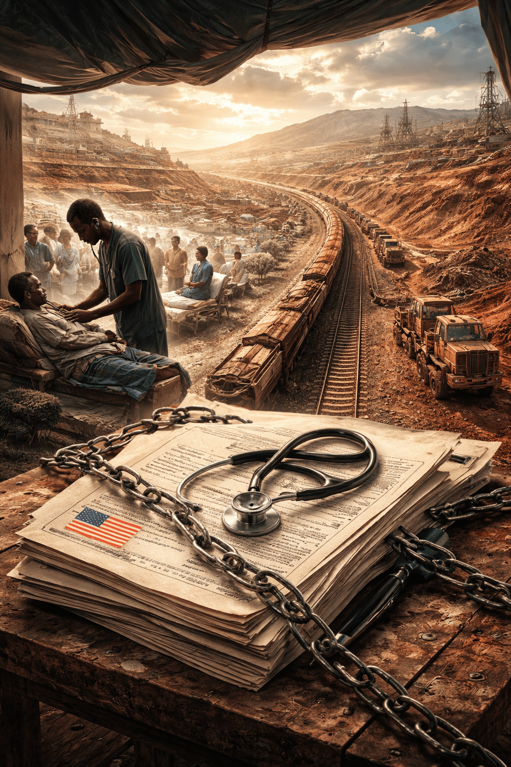 Seen together, the pattern is unmistakable. A health system built to sustain life — to keep workers strong, families intact, and communities functioning — is asked to expand within limits shaped elsewhere. Its continuity depends on meeting targets set within a fiscal landscape already narrowed by debt. At the same time, the country’s mineral wealth moves through corridors designed to feed global industry. Care and extraction travel side by side.