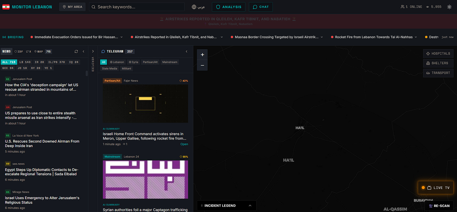 On March 7th, shadowy British intelligence contractor Siren Associates launched Monitor Lebanon. The “real-time situational awareness platform” is “designed to help individuals and organisations understand and navigate Lebanon’s rapidly evolving security environment.” The tool sifts vast swaths of “open-source information” from “news agencies, verified social media accounts, Telegram channels, conflict monitoring initiatives, and traffic data systems.” Framed as an indispensable resource helping journalists, “humanitarian” workers, local businesses and concerned citizens stay safe as Israel’s genocidal invasion intensifies, the reality is far more sinister.