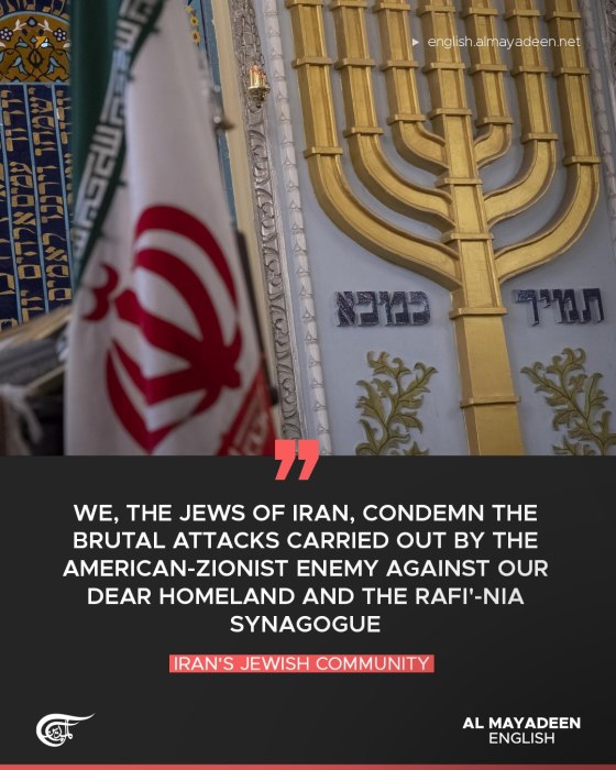 In a statement, the community said, “We, the Jews of Iran, condemn the brutal attacks carried out by the American-Zionist enemy against our dear homeland and the Rafi’-Nia synagogue.”