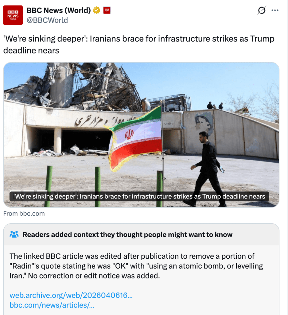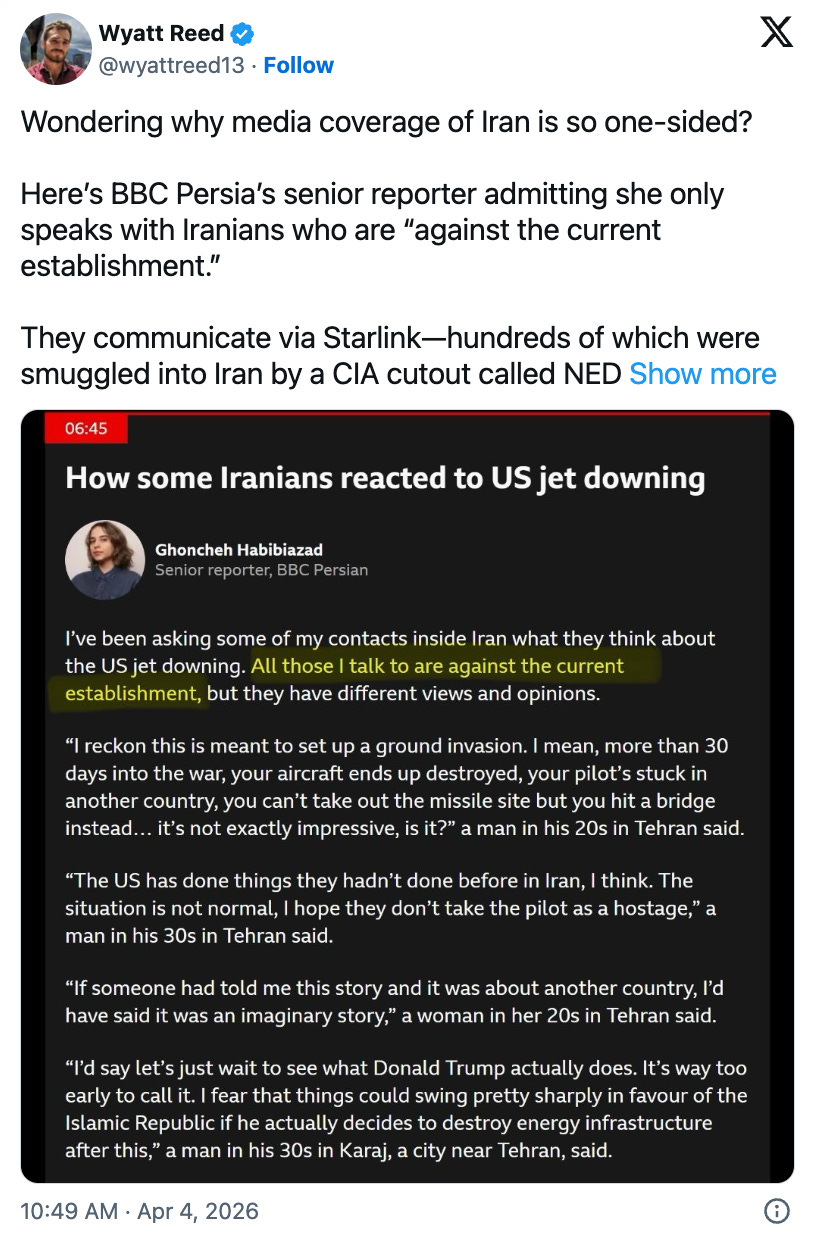 Though most experienced editors would raise suspicions about such shoddy sourcing, the BBC rewarded it. In January 2024, the UK state broadcaster hired Habibiazad on as a full-time member of the BBC Monitoring division’s Iran Team. There, she worked to undermine official Iranian government communications by compiling the reactions by various Western government-funded “fact-checking” organizations.