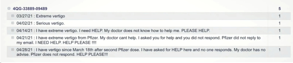 V-Safe free text reports were released via the Highwire and ICAN who obtained the data. Cries for help from a Vertigo Report and a Death Report: